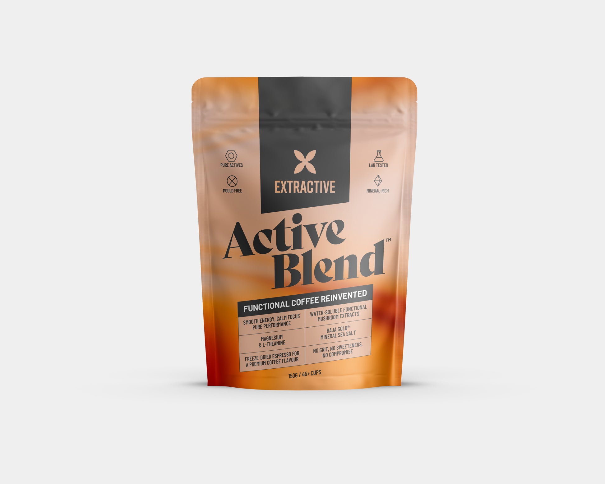 Active Blend delivers consistent cognitive and metabolic support through a targeted combination of Coffee, L-Theanine, Magnesium, and water soluble adaptogenic mushroom compounds. This synergistic formulation is engineered to optimise mental and physical performance, promote balanced + calm energy output, and sustain focus throughout the day.
